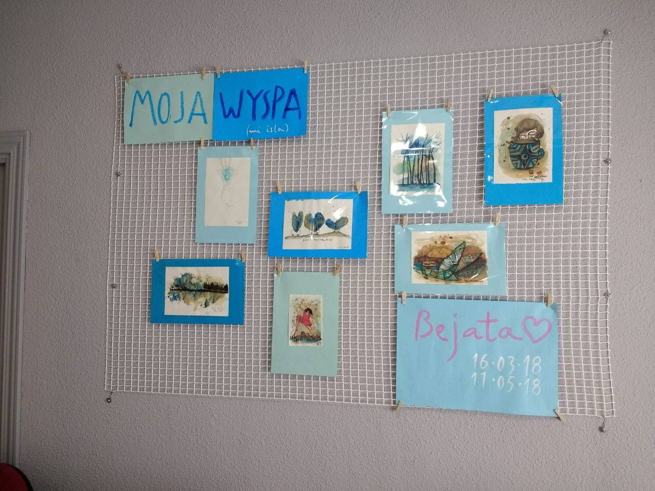 Ya tenemos en las paredes de la Ínsula Moja Wyspa (Mi Isla) de Bejata Jagielo, dando color a nuestra sala de la entrada. Os recordamos que podéis visitar la exposición hasta el 11 de mayo de 9 a 20h .